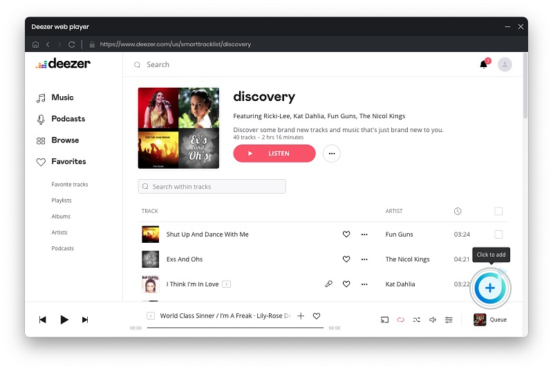 Step 3. Add Music and Playlists from Deezer Music Web Player